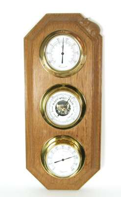 CARVED OAK FRAMED BAROMETER AND CLOCK, LATE 20TH CENTURY