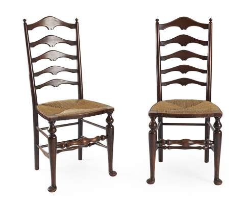 SET OF SIX STAINED BEECH LADDER-BACK CHAIRS, CIRCA 1910
