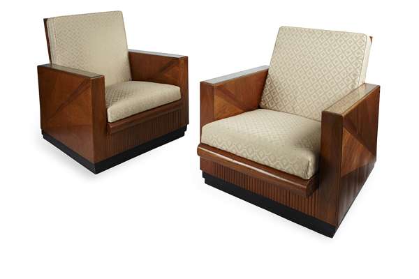 PAIR OF HARDWOOD EASY CHAIRS, 1930S