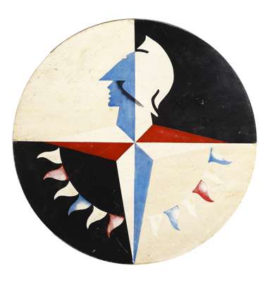 Note: Some of the most memorable graphic images of mid 20th century Britain were the work of the designer Abram Games. As an Official War Artist during World War II, he designed over a hundred posters and later created the symbols of the BBC and the Festival of Britain, as shown in the top of this occasional table.