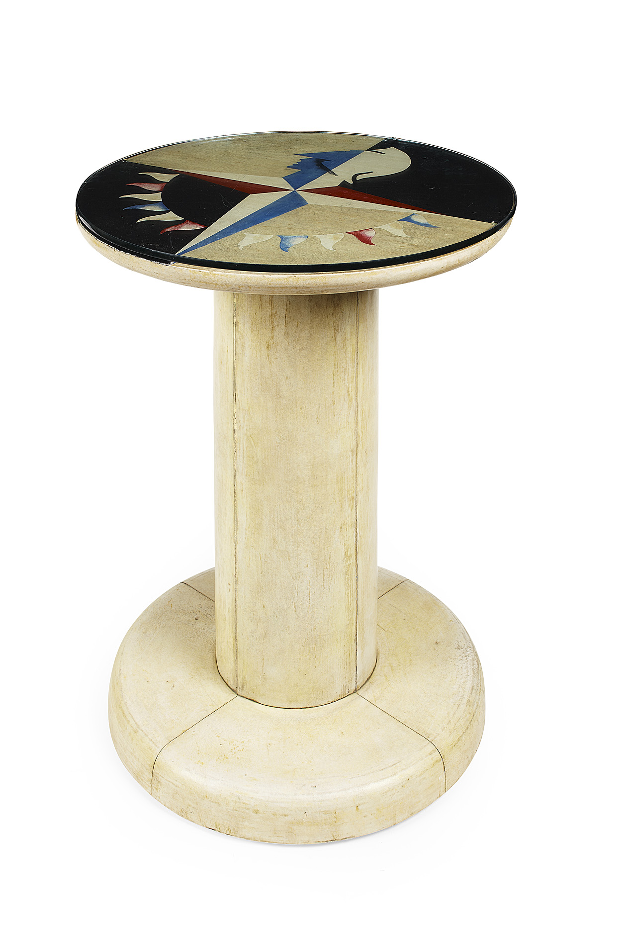 covered with a vellum veneer, the circular top painted with the Festival star above a turned column and raised on a corresponding circular plinth base