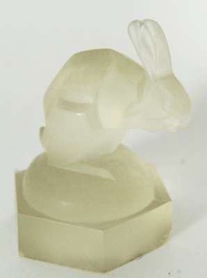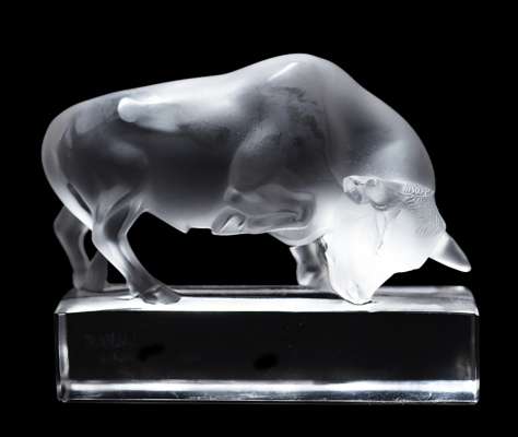 designed 1929, etched mark LALIQUE/ FRANCE, 8cm high; a LALIQUE 'TAUREAU' CLEAR AND FROSTED GLASS PAPERWEIGHT, POST 1945, designed 1931, etched mark LALIQUE/ FRANCE, 8.5cm high; and TWO LALIQUE STYLE FROSTED GLASS ANIMAL FIGURES (4)