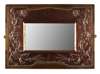 the rectangular frame, with applied and riveted copper panel with repoussé floral and foliate decoration