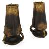 each of ribbed reverse tapering cylindrical form, patinated and gilded and cast with butterflies and leaf tips in low relief, raised on a cylindrical base, inscribed L. KANN (2)