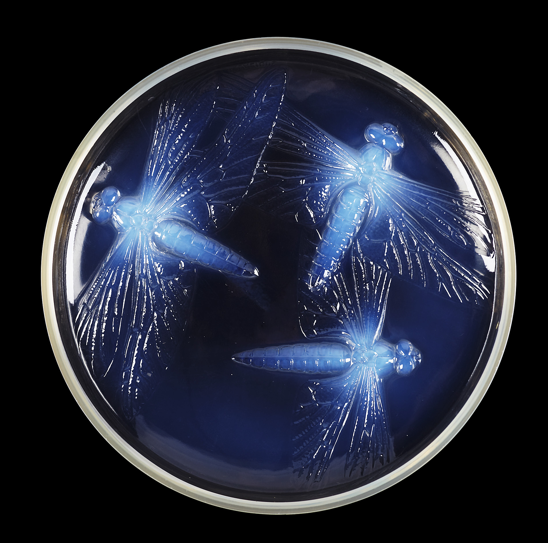 'LIBELLULES' OPALESCENT GLASS BOX AND COVER, DESIGNED 1921