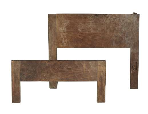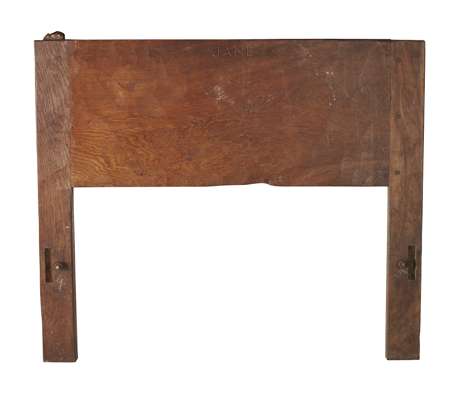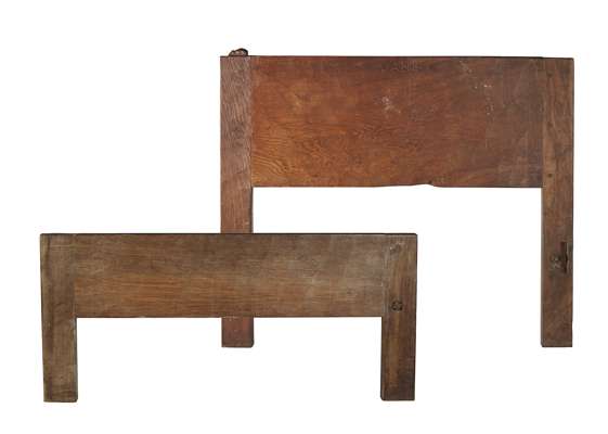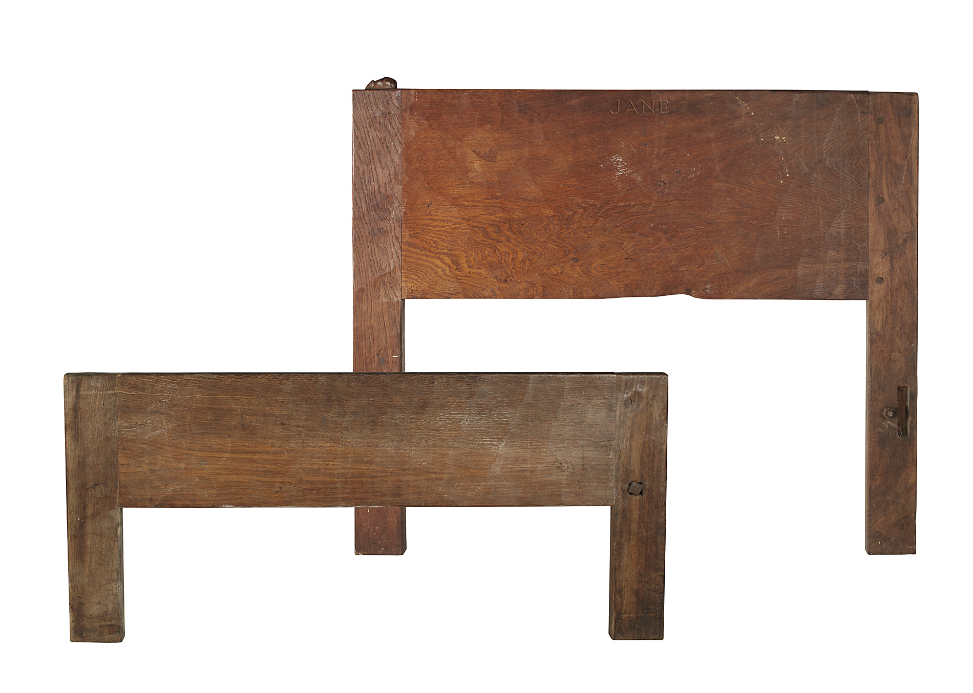 each with rectangular head and foot boards, and plank sides, the headboards carved to the centre JANE and JOHN, each also bearing carved mouse signature (2)