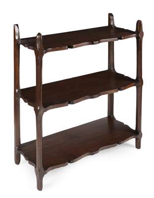 comprising three tiers, each with chamfered edge supported by corresponding chamfered uprights
