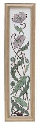 painted in coloured enamels with stylised poppies and daffodils on a white ground, framed (2)
