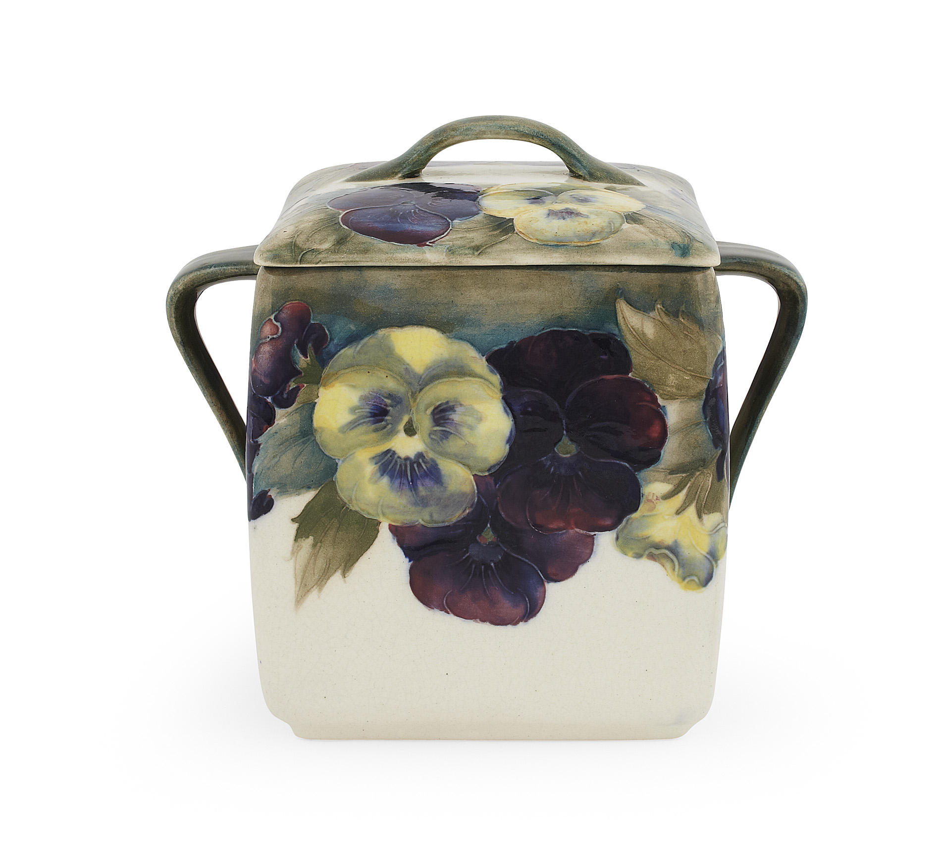 'PANSIES' BISCUIT BARREL AND COVER, CIRCA 1920