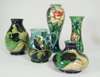 to include a 'BLACK TULIPS' squat baluster vase, 10cm high; 'BLACK TULIPS' a baluster vase, 19cm high; 'ROSES' a tall baluster vase, 27.5cm high, 'BRAMBLES' a squat baluster jug, 14cm high and 'ORCHIDS' a tall baluster vase, 20cm high, each with impressed factory marks and painted initials (5)
