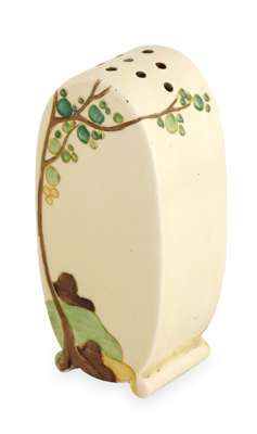 painted in coloured enamels, unmarked, 14cm high; and a CLARICE CLIFF 'PEARLS' PATTERN BONJOUR SUGAR SIFTER, 1930'S, painted in coloured enamels, unmarked,14cm high (2)