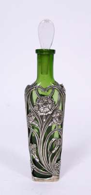 SILVER MOUNTED GLASS PERFUME BOTTLE, 1902