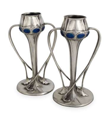 PAIR OF 'TUDRIC' PEWTER SPILL VASES, CIRCA 1900