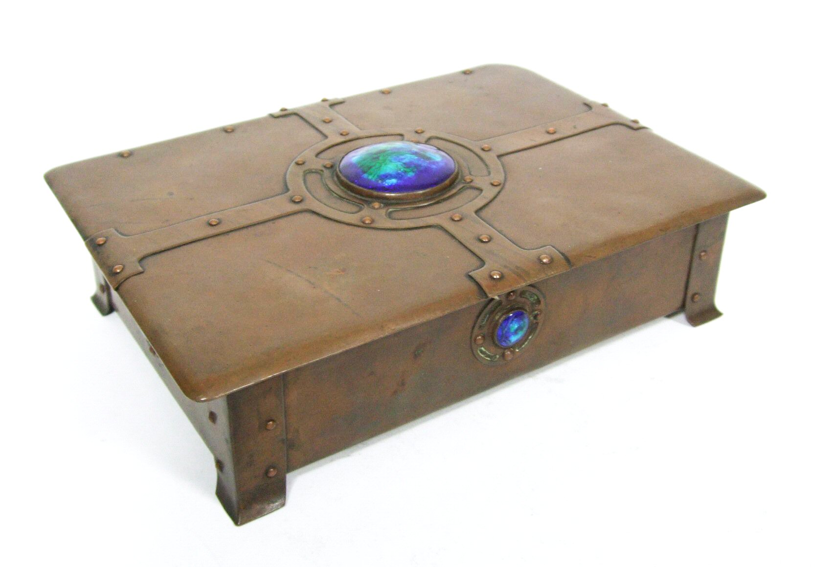 ARTS AND CRAFTS COPPER AND ENAMEL BOX, CIRCA 1905