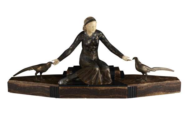 LARGE ART DECO METAL AND IVORINE FIGURE GROUP, CIRCA 1925