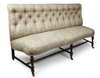the buttoned back above serpentine seat on spirally reeded baluster legs linked by stretchers