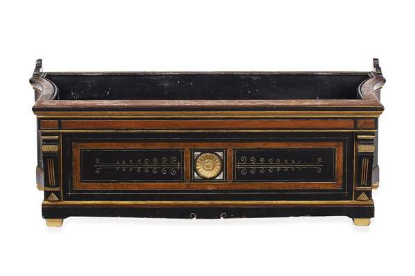 WALNUT, EBONISED & GILDED JARDINIERE, CIRCA 1880