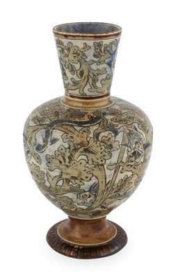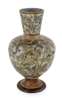of footed bottle form, incised with an allover design of fish and eels swimming through seaweed, incised mark to base MARTIN BROS./ LONDON & SOUTHALL/ 10-1891