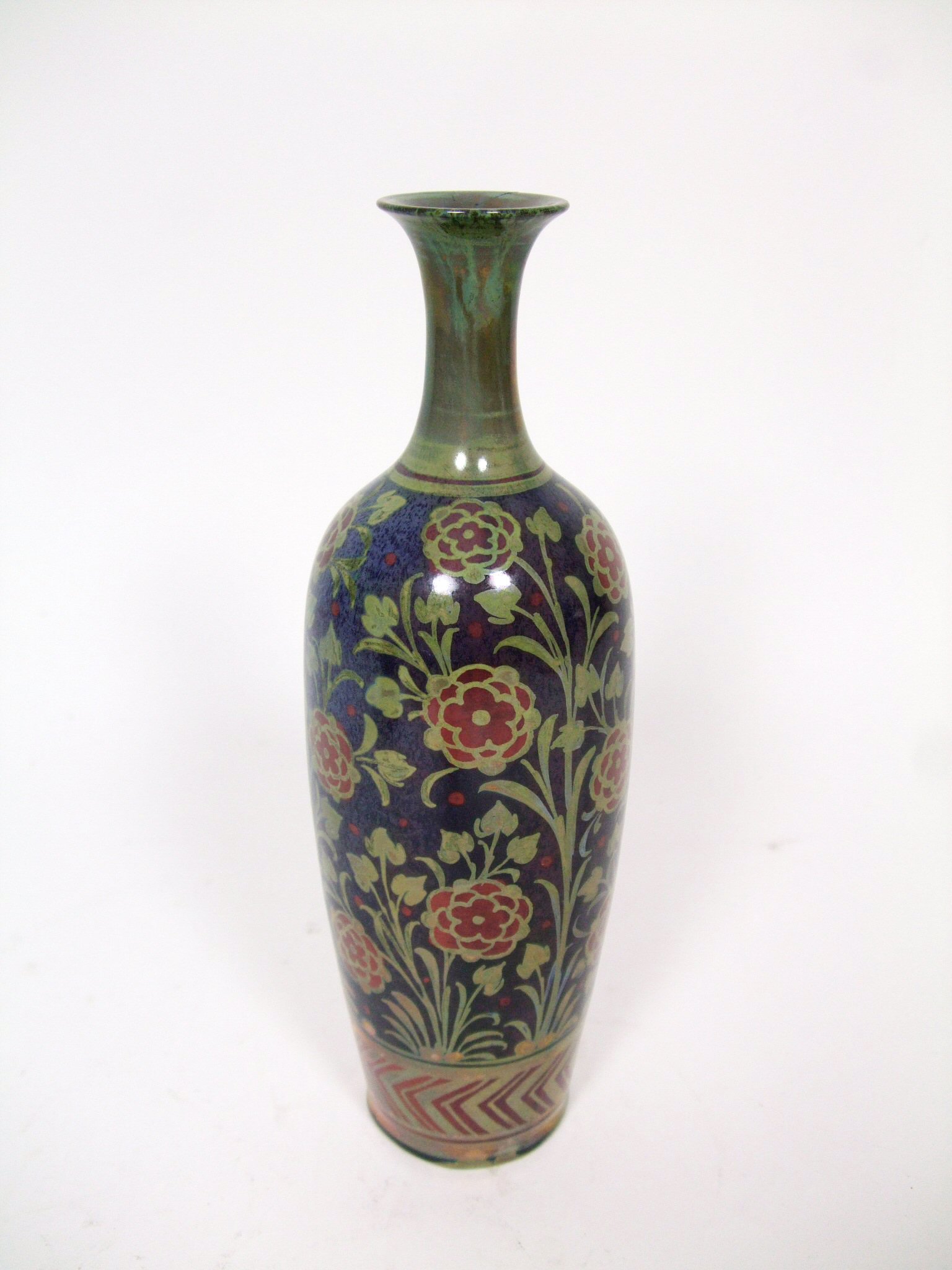 of tall bottle form, decorated with flowering plants, impressed factory marks, painted monogram mark, small chip to rim