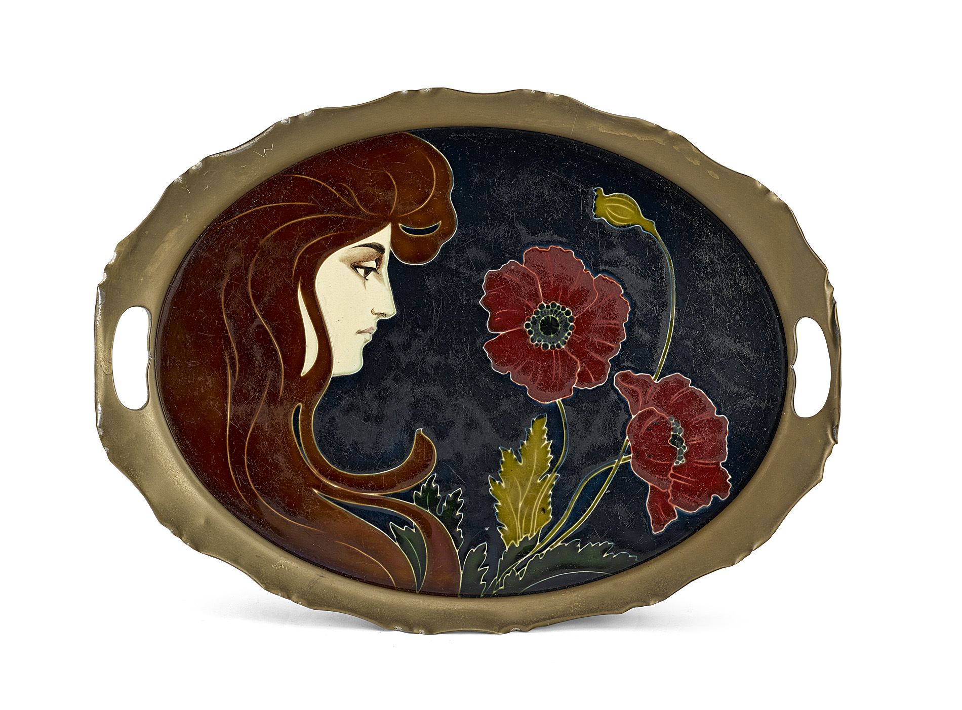 ART NOUVEAU OVAL EARTHENWARE TRAY, CIRCA 1900