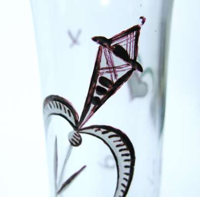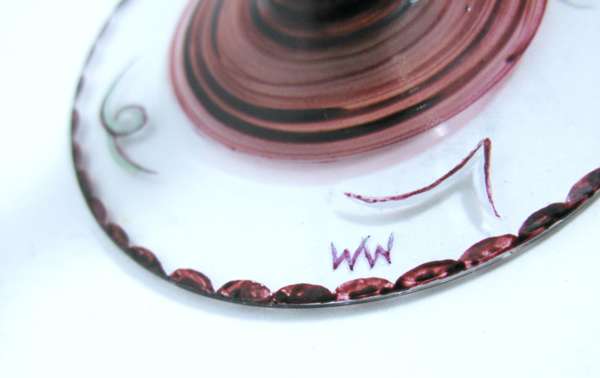 of slender tapering form, painted with stylised flowering plants, painted WW marks, painted initial F