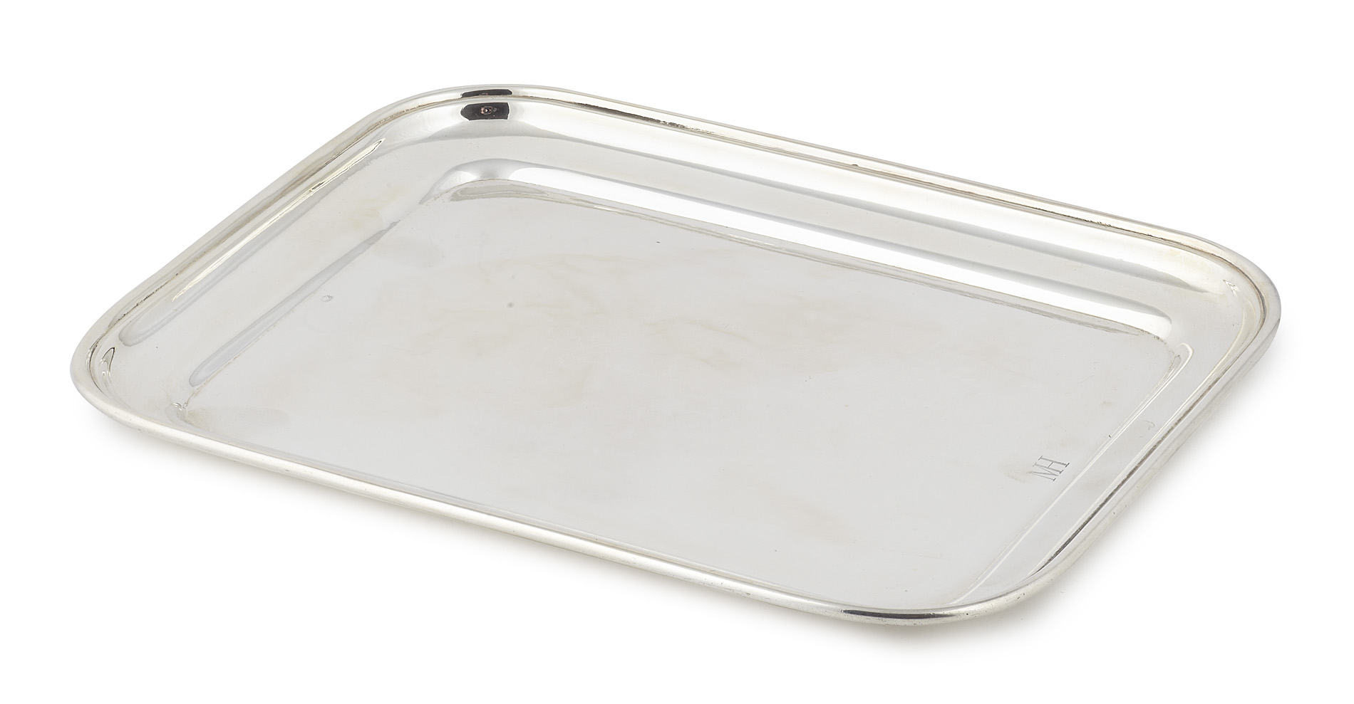 of rectangular outline with stepped detail to rim, stamped maker's marks (rubbed)