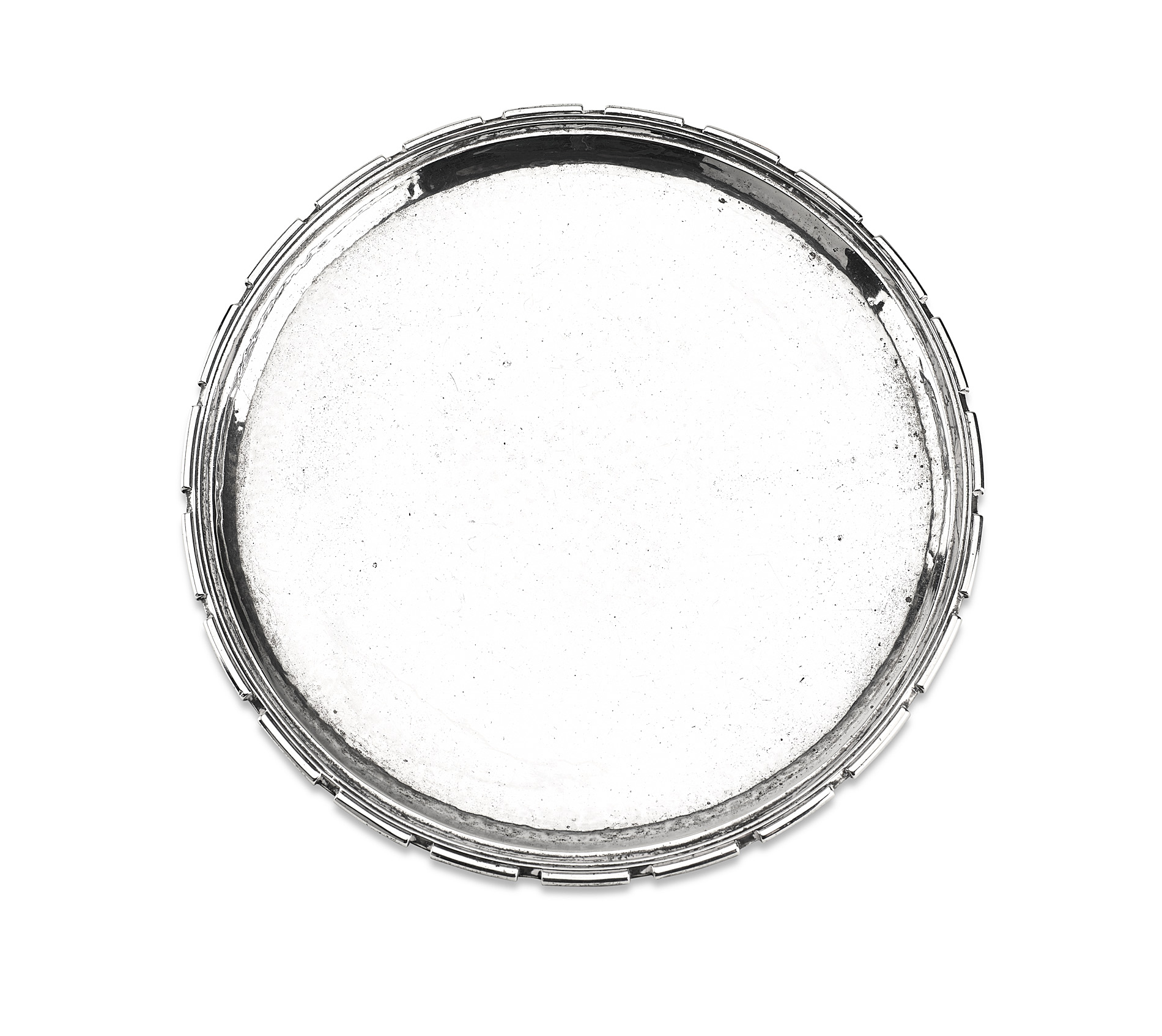 of circular form with moulded and castellated rim, planished surface and applied foot, bears inscription OMAR RAMSDEN ME FECIT, hallmarked London 1933, 10oz