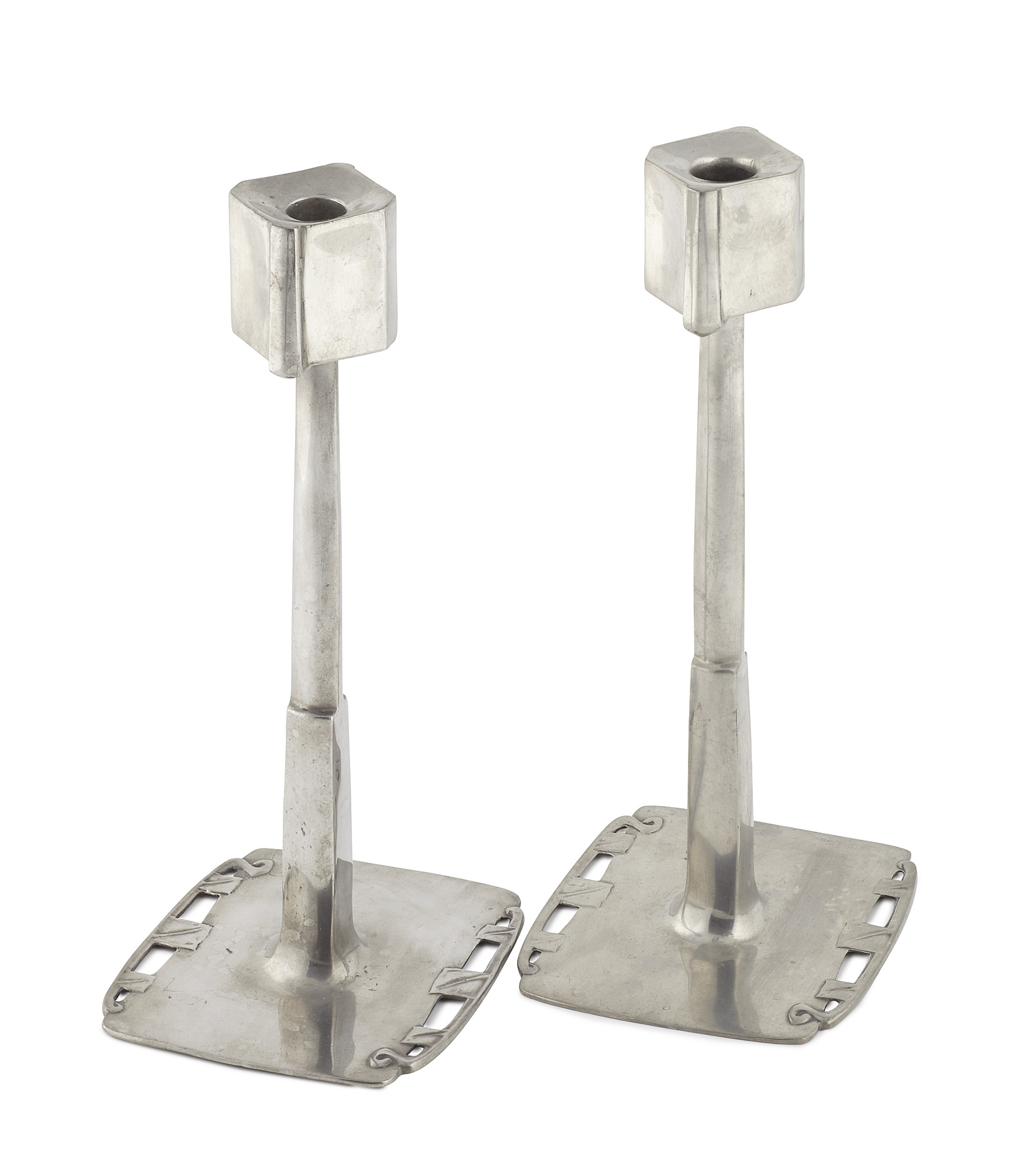 PAIR OF 'TUDRIC' PEWTER CANDLESTICKS, CIRCA 1900