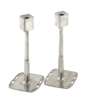 each with square section nozzles on tapering stems, the rectangular pierced bases with stylised leaf motif decoration, stamped maker's marks 0725 (2)