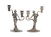 PAIR OF ELECTROPLATED PEWTER FIGURAL TWIN BRANCH CANDELABRA, CIRCA 1900