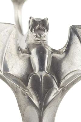 PAIR OF THREE BRANCH 'BAT' PEWTER CANDELABRA, CIRCA 1900