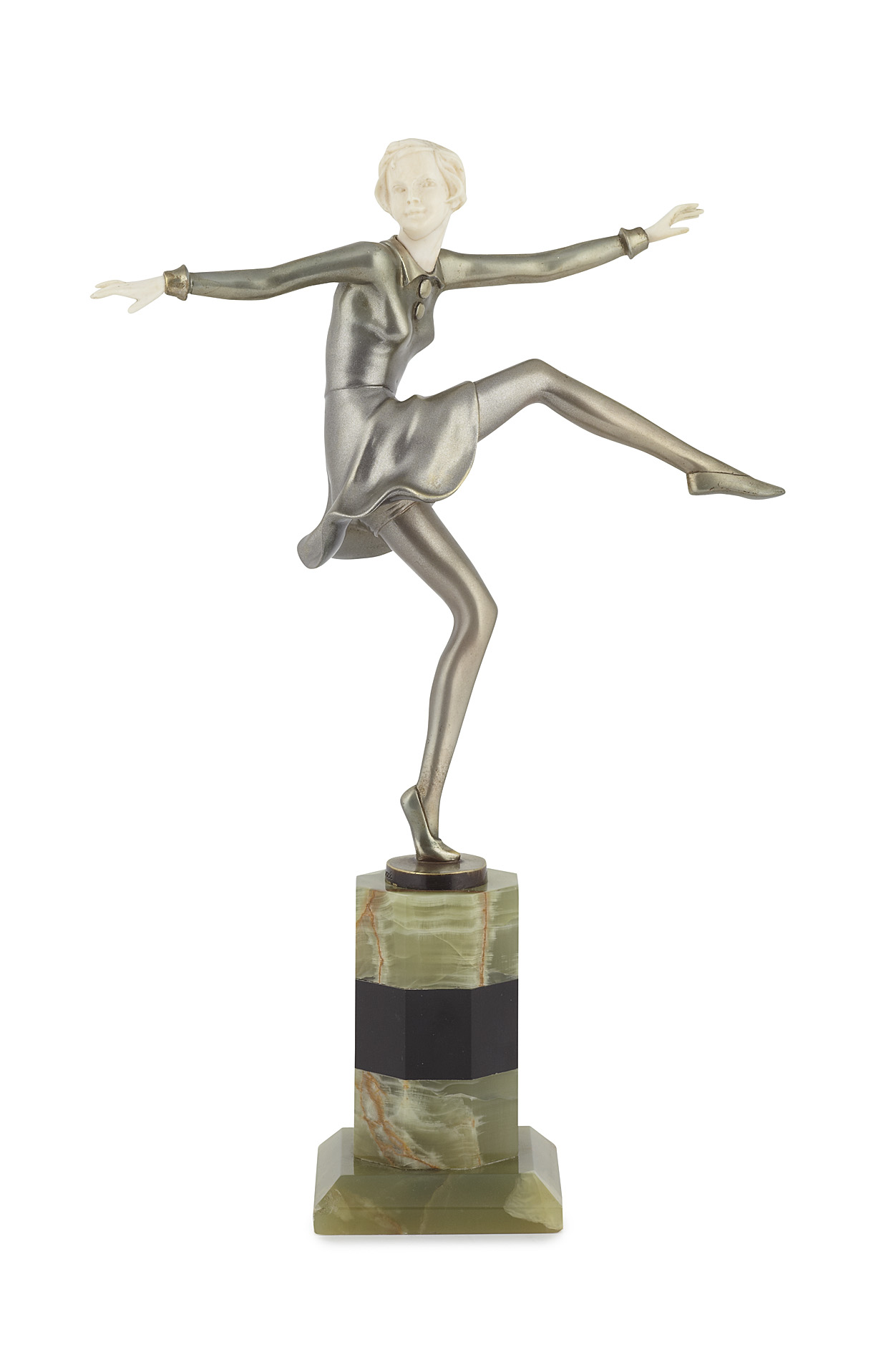 SILVERED BRONZE & IVORY FIGURE, CIRCA 1925