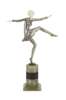 cast as a dancing girl, signed in the bronze LORENZL, and raised on a green onyx and black slate hexagonal base with square plinth