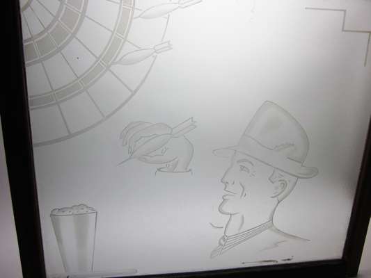 decorated with a girl and cocktail shaker; men playing dominoes; and a man with dartboard and pint (3)