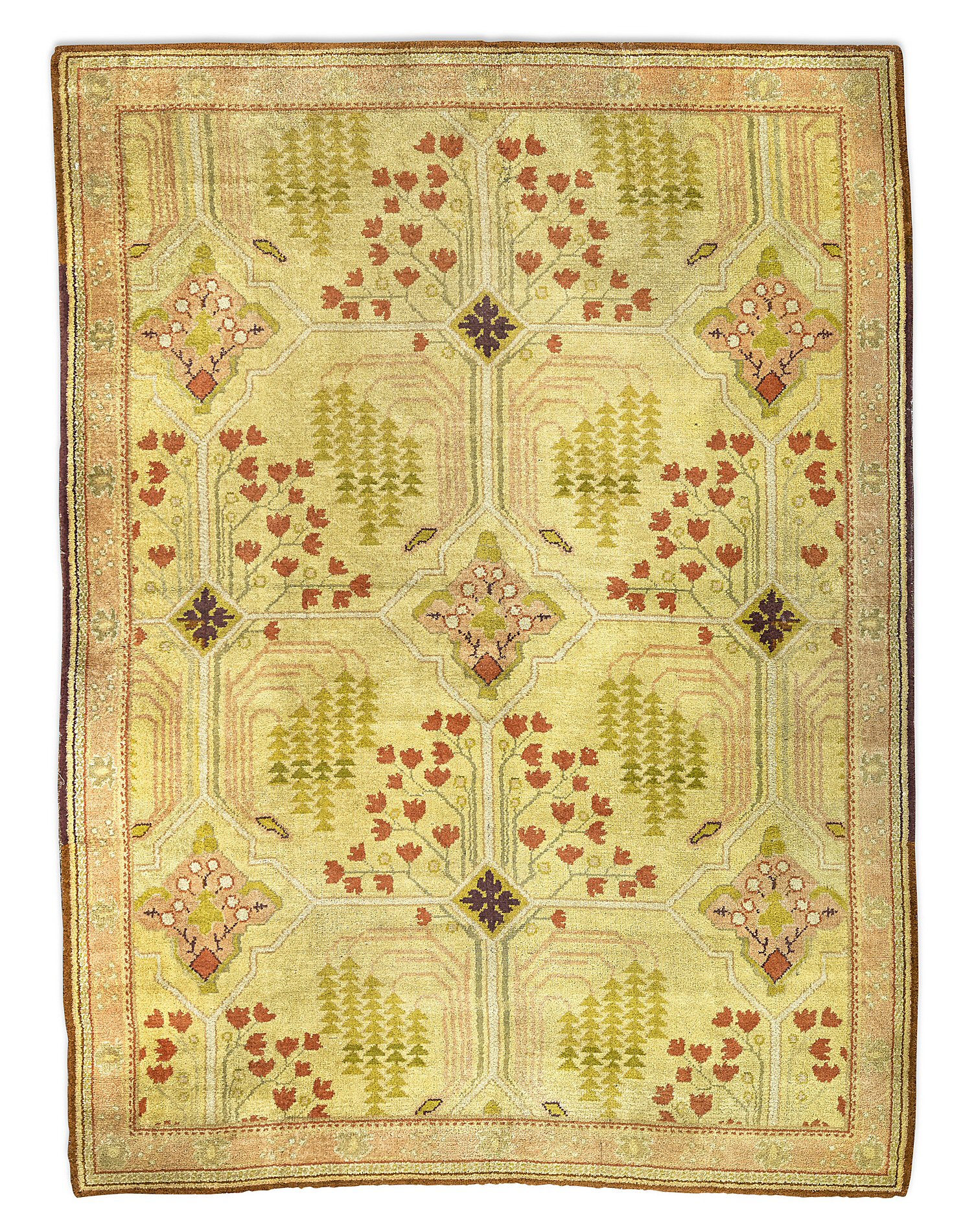the buff field with cruciform design of stylised foliage within multiple bands