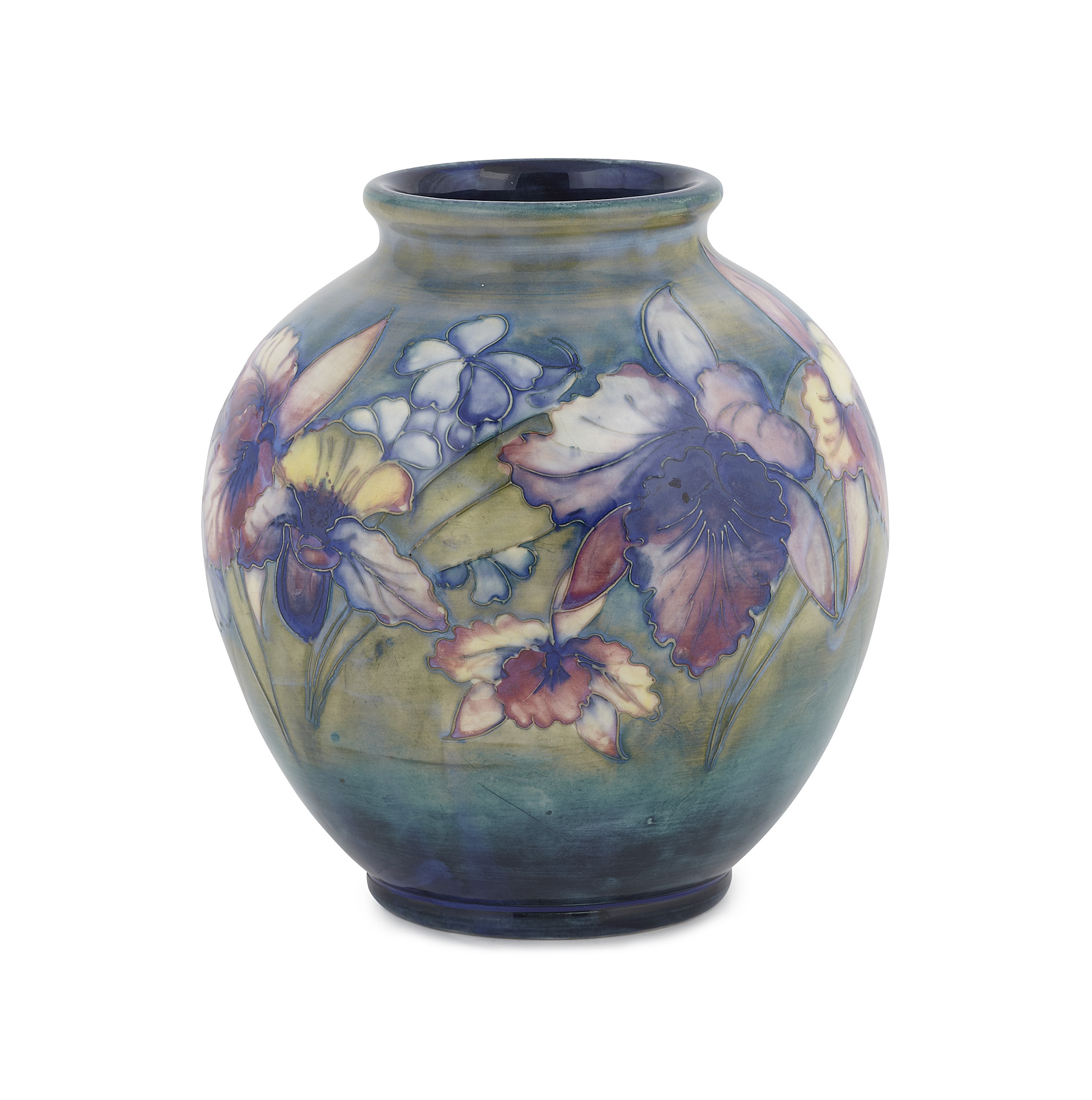 'ORCHIDS' PATTERN OVOID EARTHENWARE VASE, CIRCA 1930