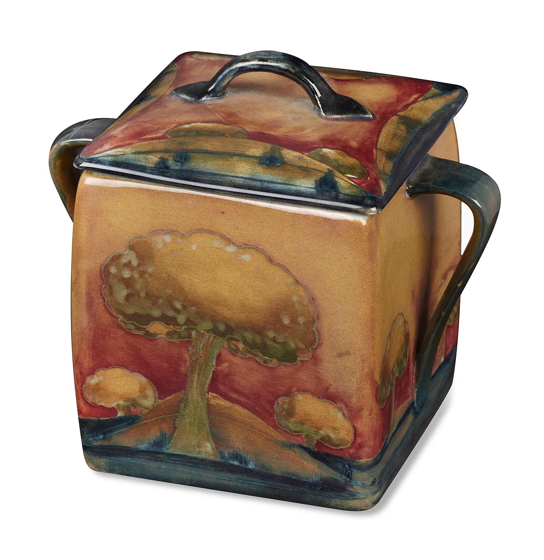 'EVENTIDE' PATTERN EARTHENWARE BISCUIT BARREL & COVER, CIRCA 1930