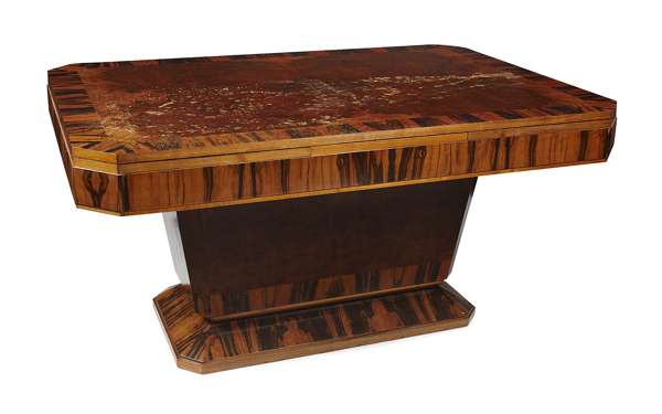 WALNUT AND MACASSAR EBONY BANDED DINING TABLE, CIRCA 1930