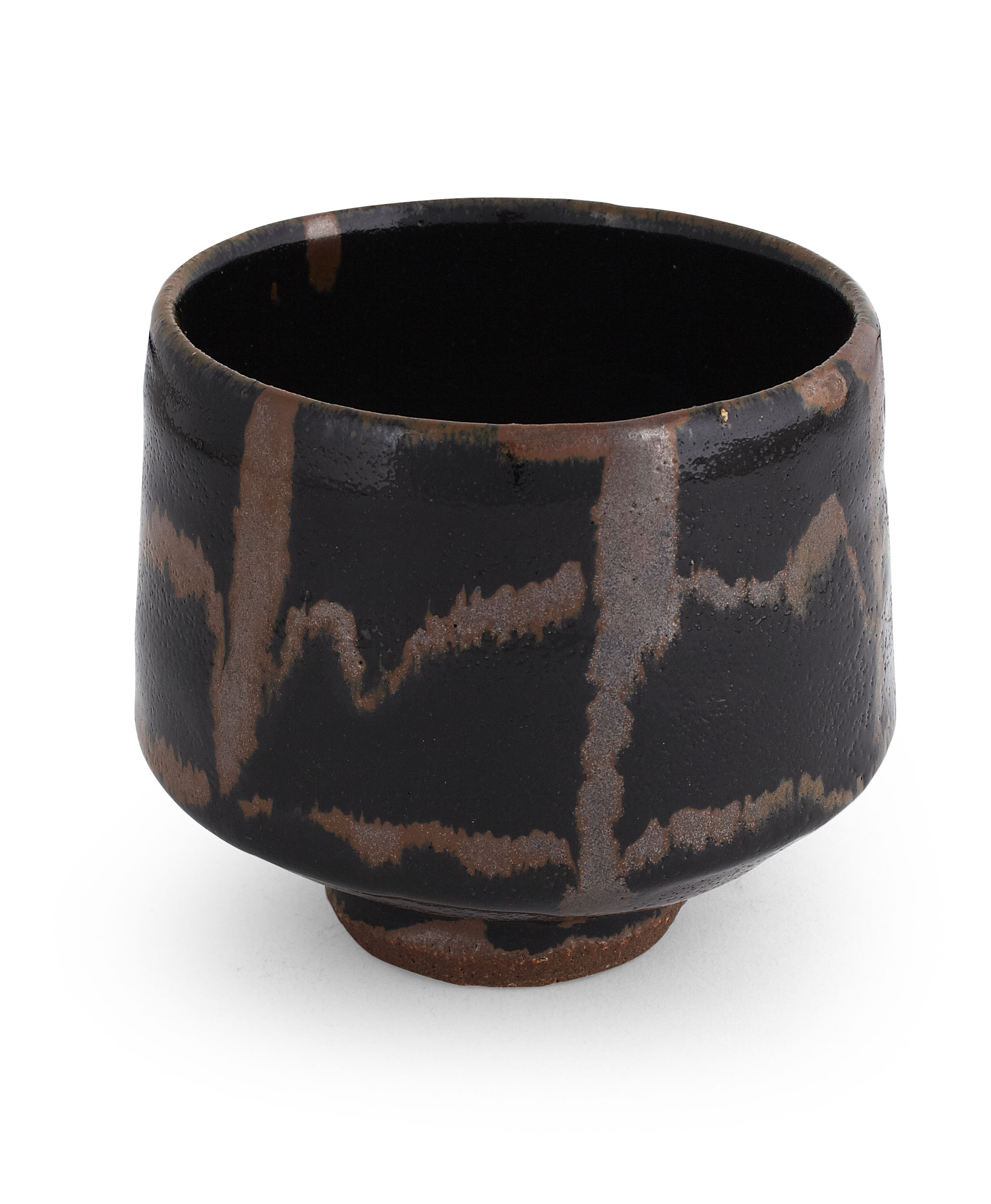 covered in a Tenmoku glaze and with Kaki trailed decoration