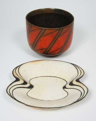inscribed makers monogram, 12.5cm high; and an EVELYN BEALE BOWL, painted maker's mark, dated 2004, 20cm across (2)