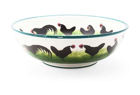 LARGE 'BLACK COCKEREL & HENS' BASIN, CIRCA 1900