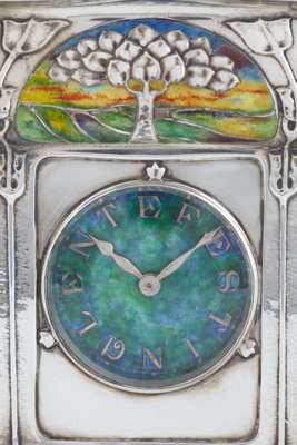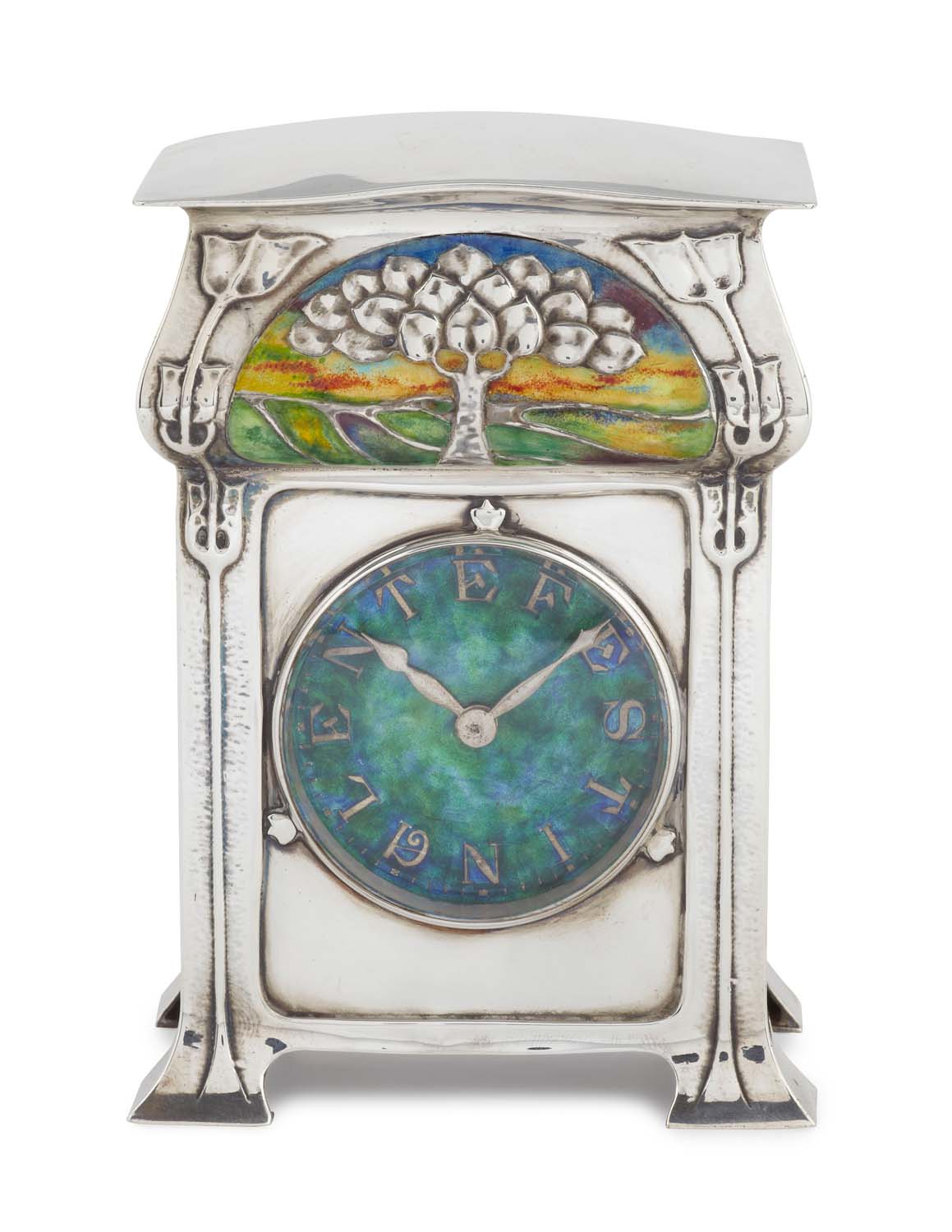 'CYMRIC' SILVER AND ENAMEL MANTEL CLOCK, DATED 1903