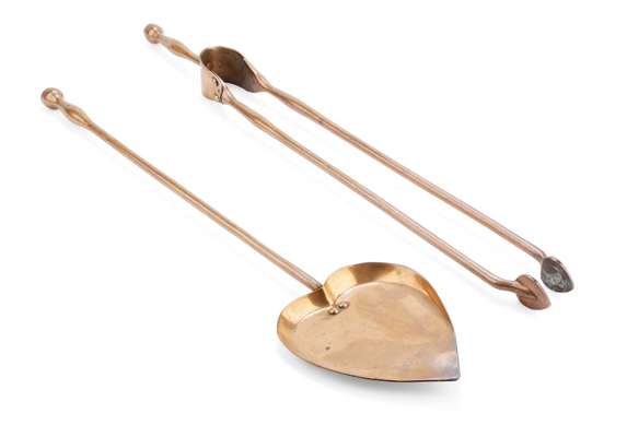 comprising a pair of coal pincers (65cm long) and an ash shovel (65cm long) (2)