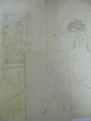 pencil and ink study, faintly inscribed YOUR DEAR HEAD BOWED TO/ THE GILLYFLOWER BED, 31cm x 15cm; 'A XMAS WISH..', pencil study by the same hand, inscribed A XMAS WISH/ ROSES ROSES/ ALL THE WAY, 17cm x 10cm; and 'GREETING', a pencil study, inscribed GREETING/ JOPY BE YOURS AND SONG/ THROUGHOUT THE DAYS, 15cm x 8cm (3)