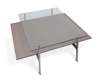 the rectangular glass top supported on chrome legs with leather covered undertier, bears makers label