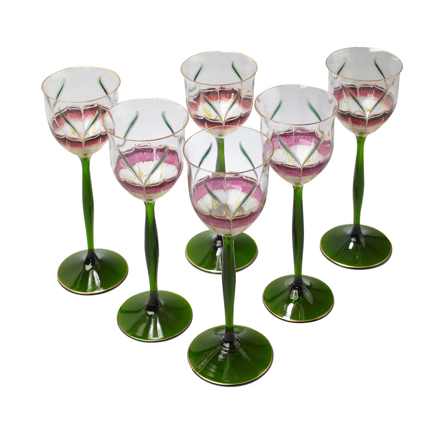 SET OF SIX ART NOUVEAU HOCK GLASSES, CIRCA 1910