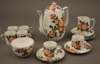 comprising a coffee pot and cover, a sugar bowl, a milk jug, six coffee cans and six saucers, each painted in colours with dog roses, painted marks (16)