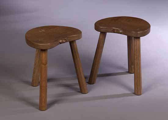 each with kidney shaped seats carved to the edge with a mouse, on tapered and faceted legs (2)