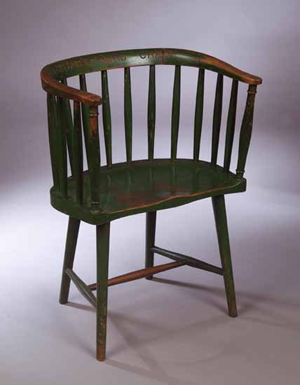 Note: This chair was donated to the Glasgow "Ours" Club by the secretary' as was their tradition, and the top rail is carved "Secretary's chair,Ours" accordingly.