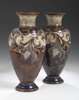 of shouldered baluster form, decorated by Eliza Simmance with a band of luxuriant foliage and reserve on a mottled treacle ground, impressed and incised marks (2)